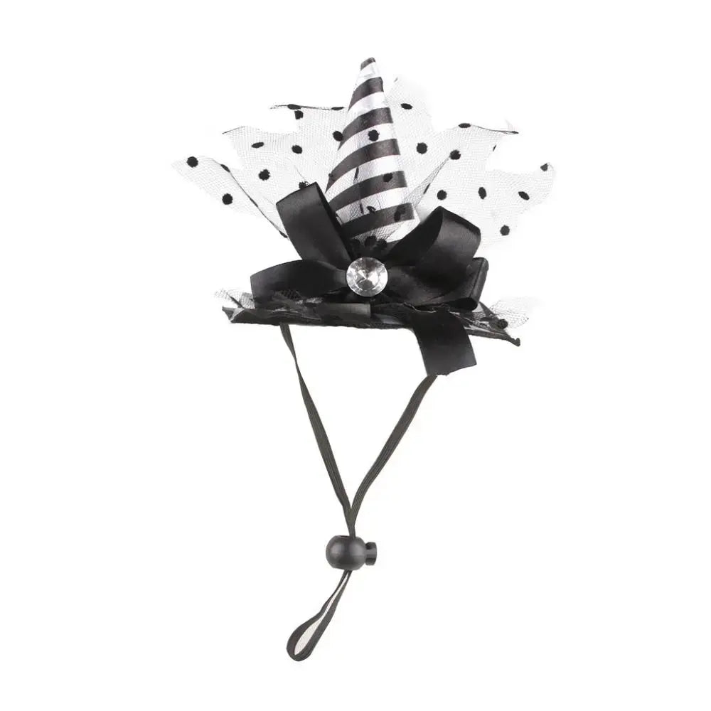 The GLOBAL MALL MND Pet Witch Hat Cosplay features an eye-catching striped design with lace details and bat-inspired accents for a magical appearance. Crafted from lightweight and comfortable materials, it ensures your pet can wear it without discomfort. The soft interior lining helps prevent irritation, making it suitable for short-term wear during special occasions.