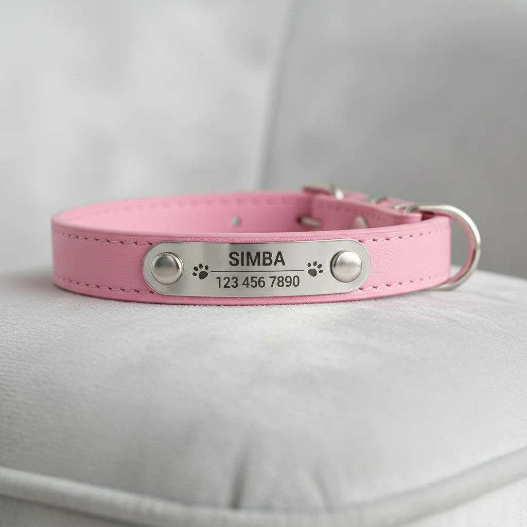 GLOBAL MALL MND Collier Chien Personnalisé - Sécurisez votre compagnon ! est l’accessoire idéal pour allier sécurité, confort et style. Conçu pour les chiens de toutes tailles, ce collier personnalisable permet d’ajouter le nom de votre animal et vos coordonnées pour une identification rapide en cas de perte.