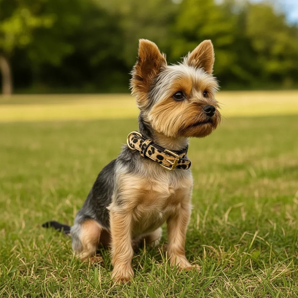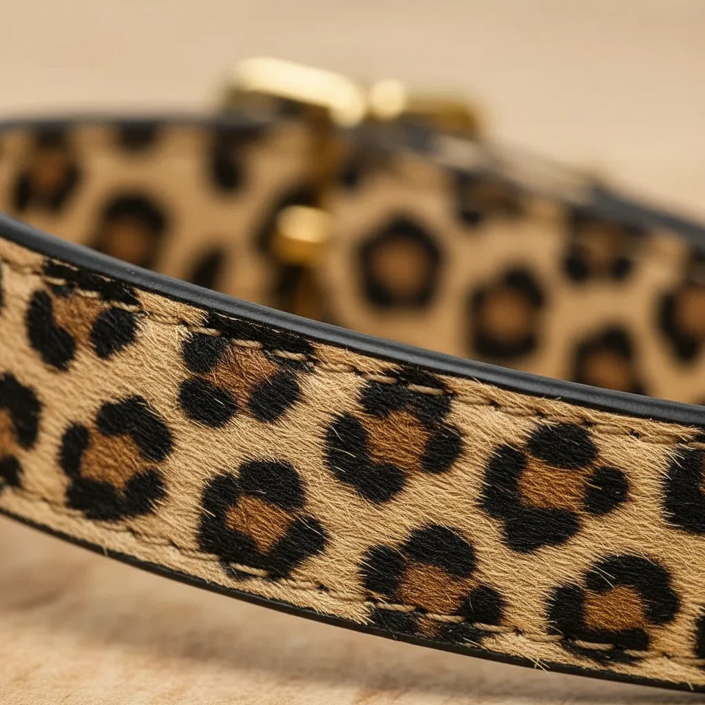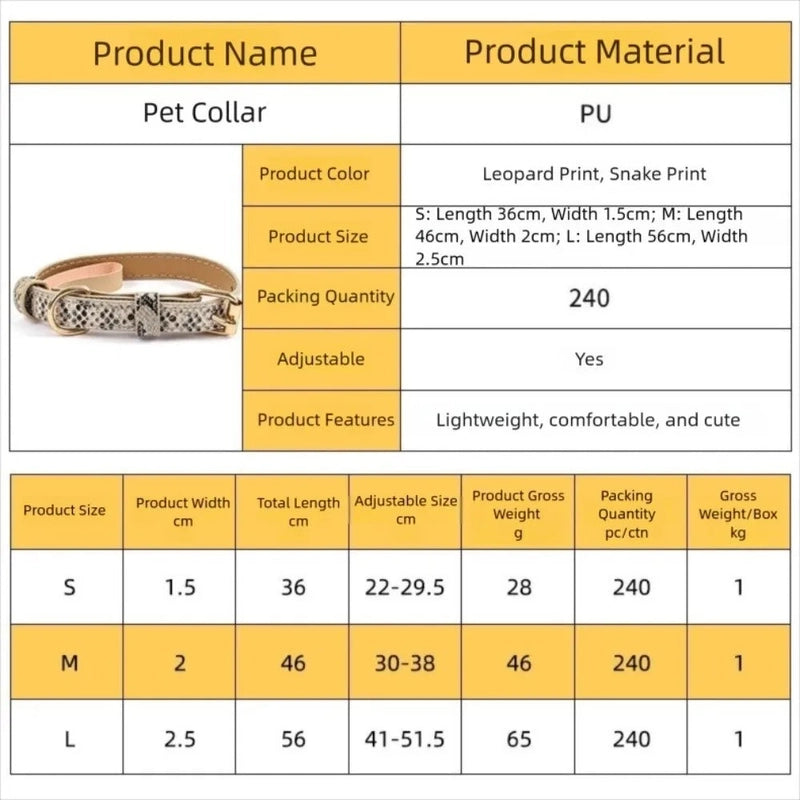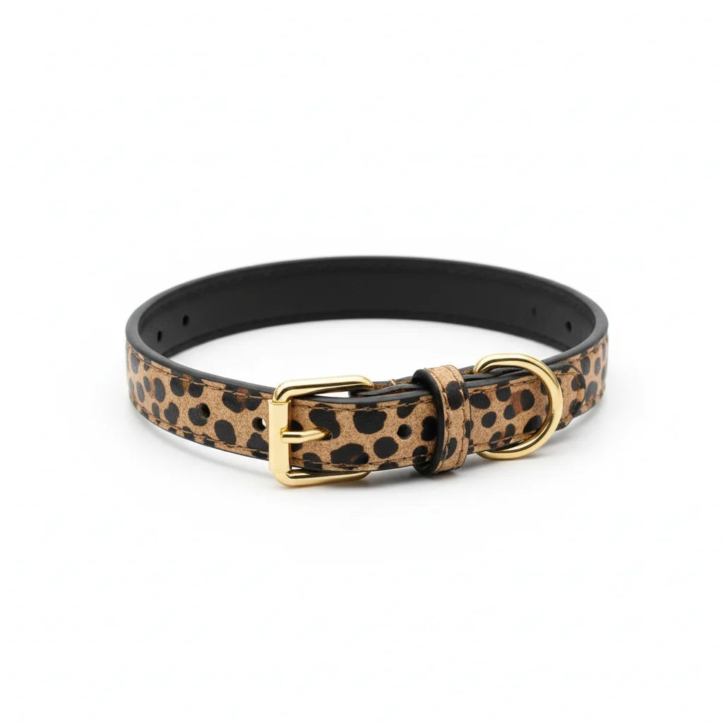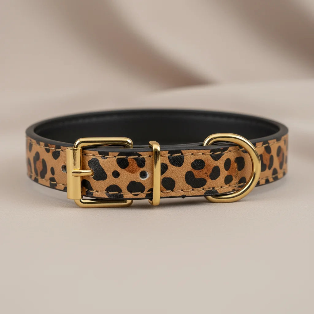 GLOBAL MALL MND presents the Trendy Leopard Print Dog Collar, crafted from durable PU leather for small and medium-sized dogs. This stylish and functional collar combines fashion with practicality, making your pet the center of attention during walks, outings, or social events.